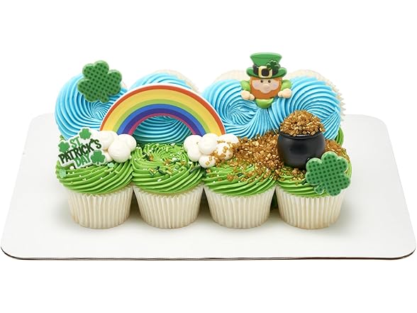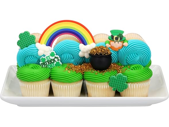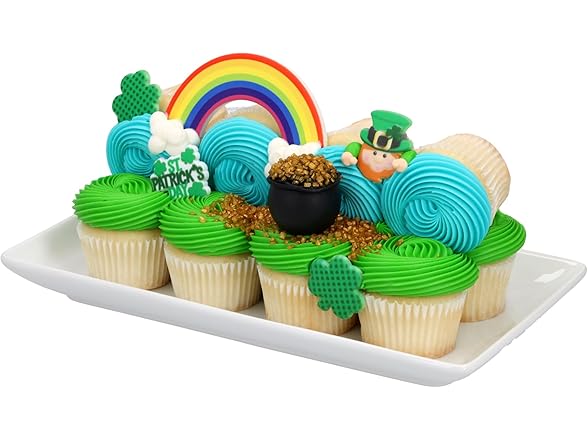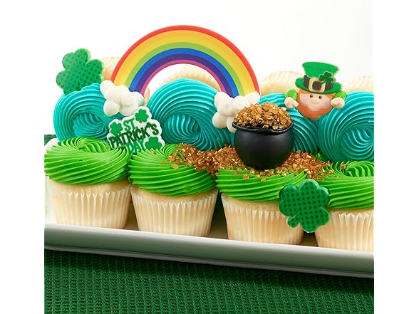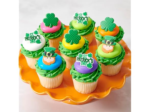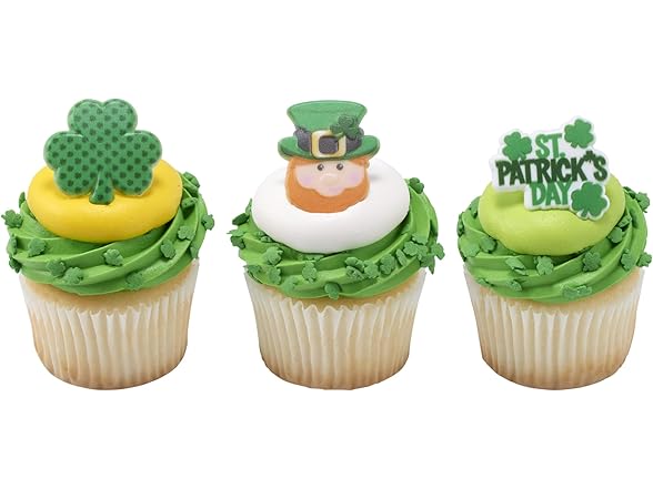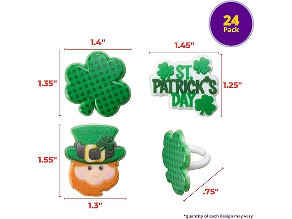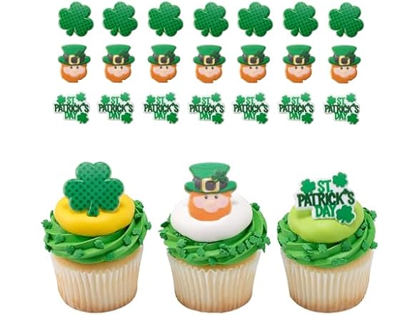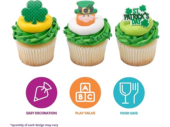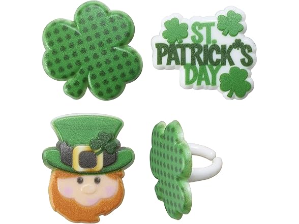 DecoPac St. Patrick's Day Rings, Cupcake Decorations, Cupcake Toppers Featuring Green Shamrock and Leprechauns, Food Safe Cake Topper – 24 Pack
