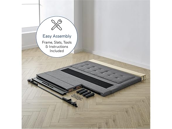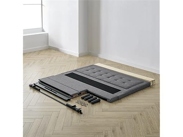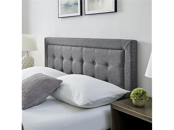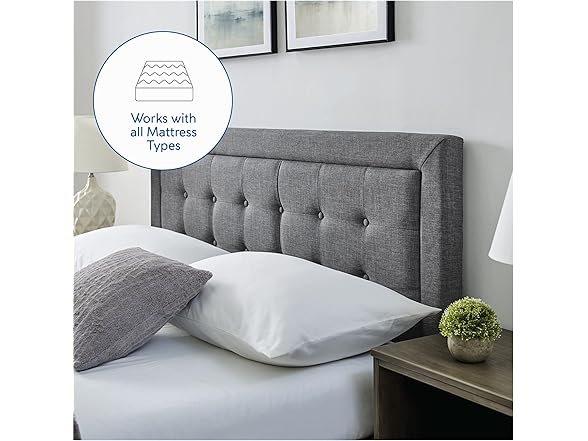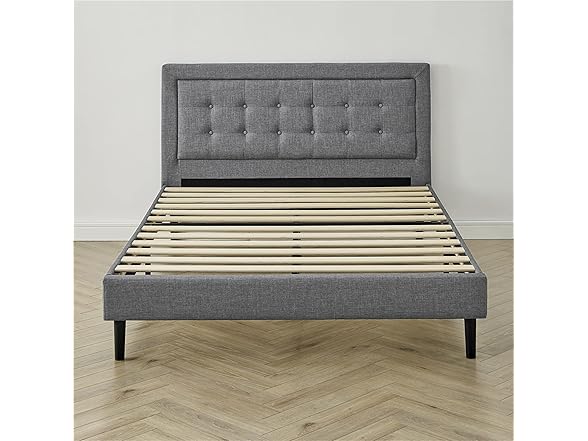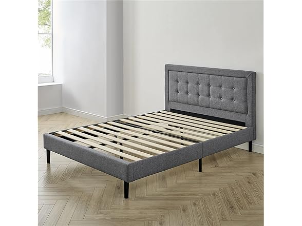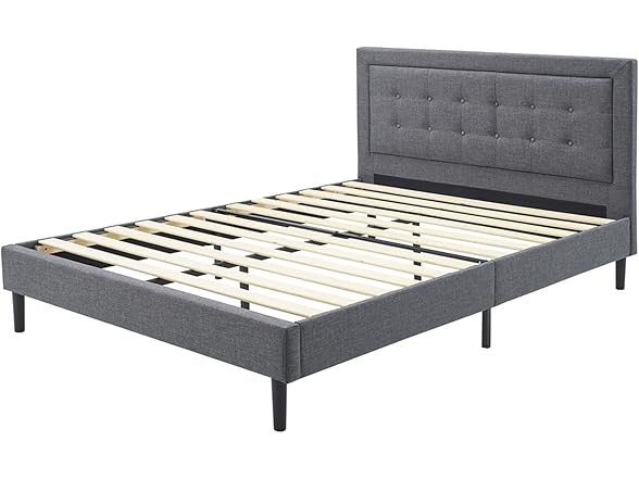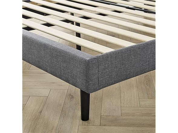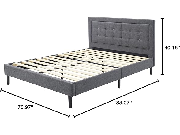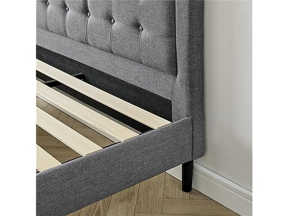 DeCoro Mornington 2.0 Upholstered Platform Bed | Headboard and Metal Frame with Wood Slat Support, Grey, King Size