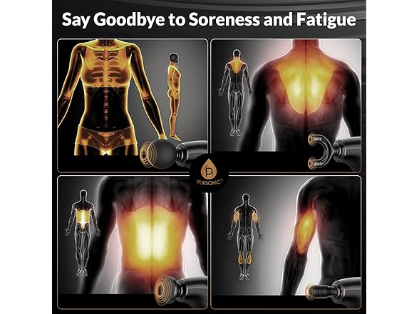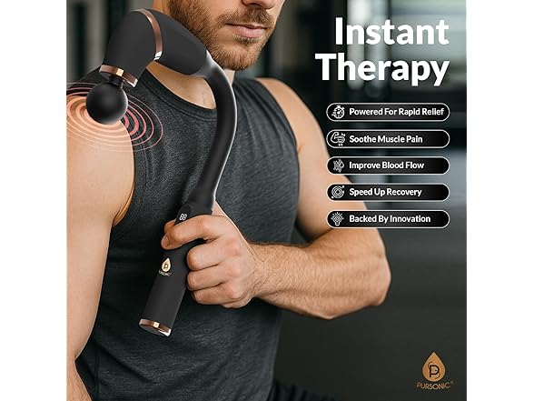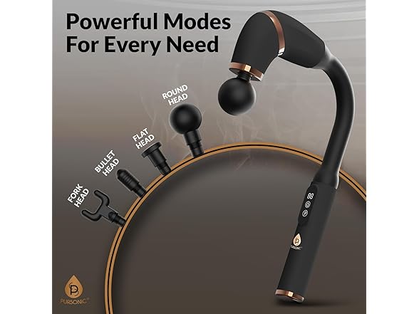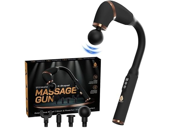 1-Pack or 2-Pack Pursonic Deep Tissue Massage Gun with U-Shaped Design & Long Handle – Handheld Back Massager with 4 Heads, 6 Speeds, USB-C Rechargeable for Neck, Shoulders, Legs & Muscles