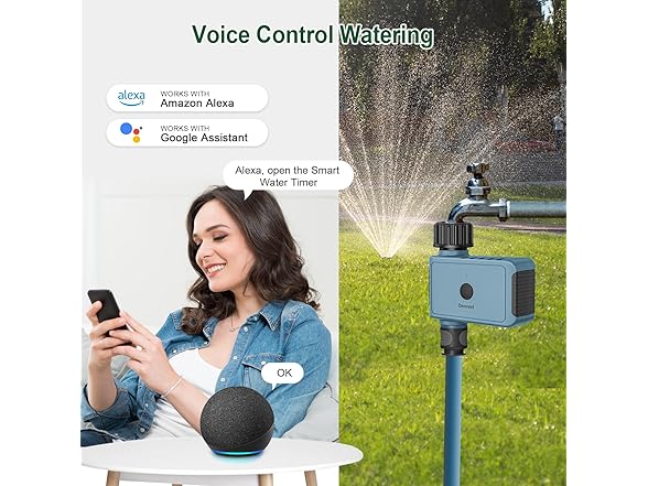 - 【Smart Voice Control】: Our WiFi water timer can compatible with Alexa and Google Assistant. Simply use your voice to turn on or off the water hose timer, enjoying hassle-free control over your watering system.