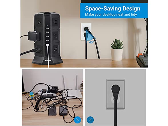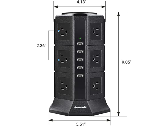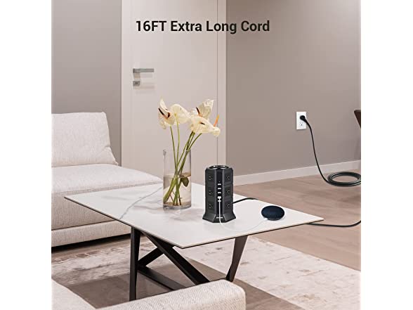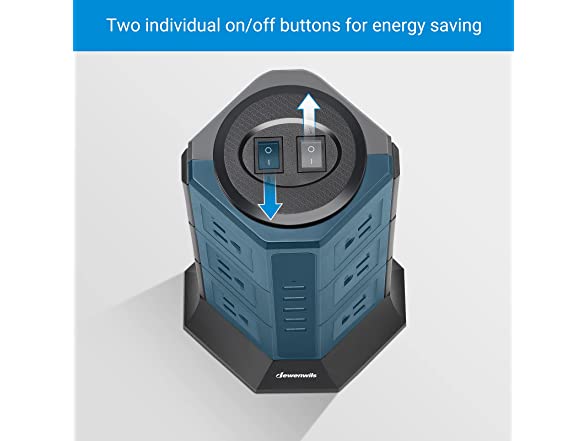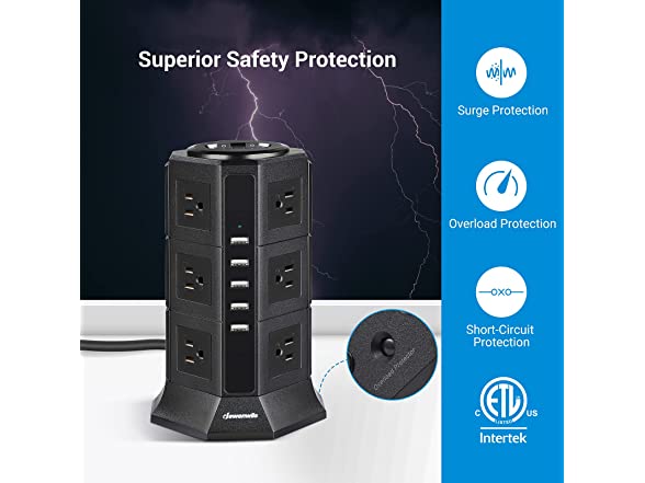 DEWENWILS 12-Outlet Power Strip Surge Protector, 16FT Tower Power Strip with 5-USB Ports, 2-Switch Control, 15A Circuit Breaker, 1500Joules, Flat Plug Charging Station for Home, Office, ETL Listed