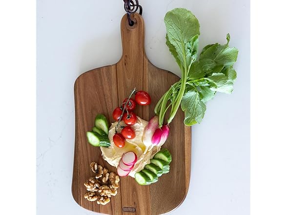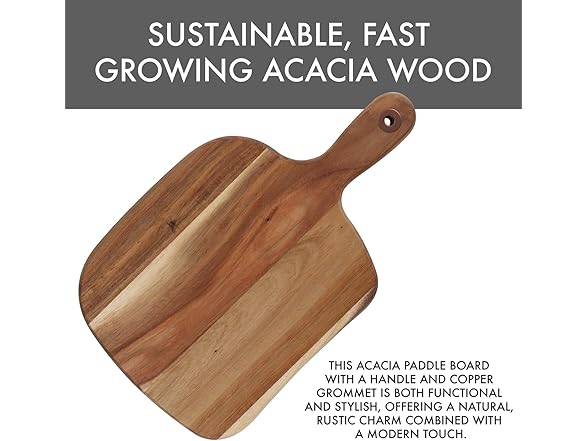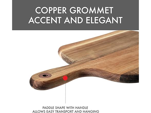 Dexas Premium Acacia Wood Paddle Board with Copper Grommet – 15" x 9" x 0.75" | Charcuterie, Cheese & Serving Board