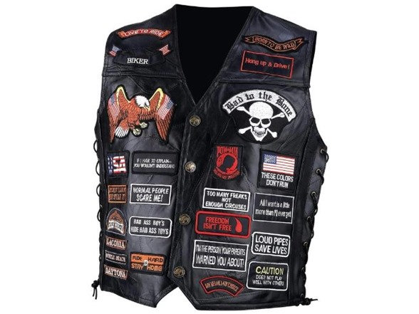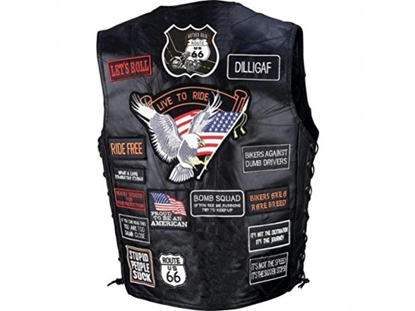 Diamond Plate Rock Design Genuine Buffalo Leather Biker Vest With 42 Patches- 3x