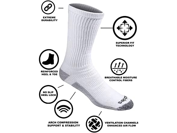 Dickies Mens Multi-pack Dri-tech 2.0 Moisture Control Heel-lock Crew Socks