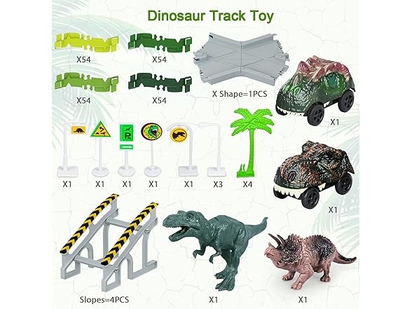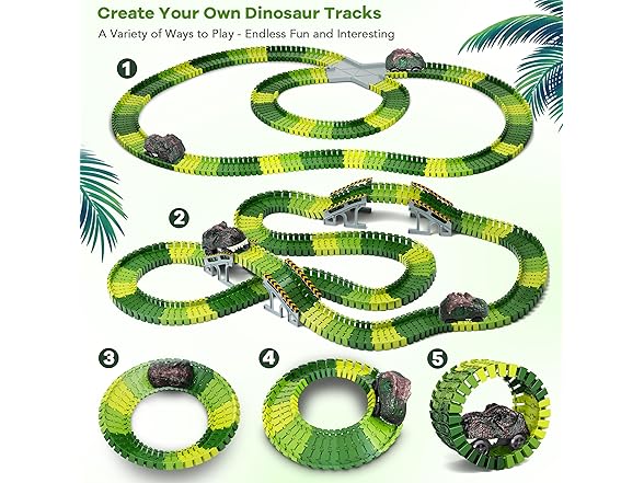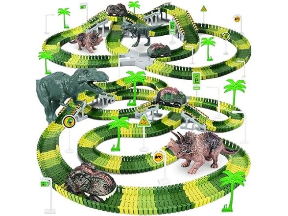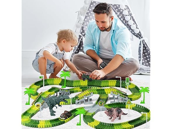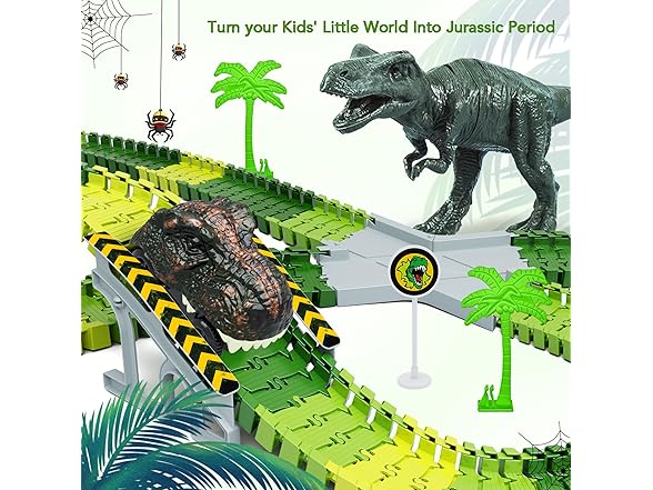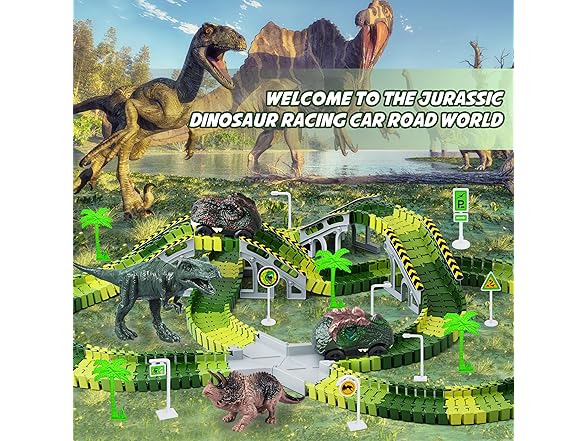 Dinosaur Toys,Create A Dinosaur World Road Race,Flexible Track Playset and 2 pcs Cool Dinosaur car for 3 4 5 6 Year & Up Old boy Girls Best Gift