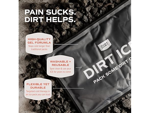 - Effective Pain Relief: Discover 360° cold therapy for lasting comfort. DIRT Ice provides precise cold compression where needed. Reusable packs reduce waste, promoting a healthier planet. The sustainable choice for long-lasting comfort.