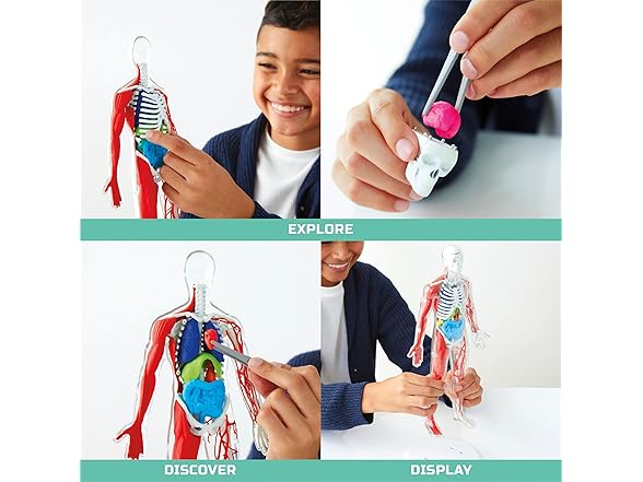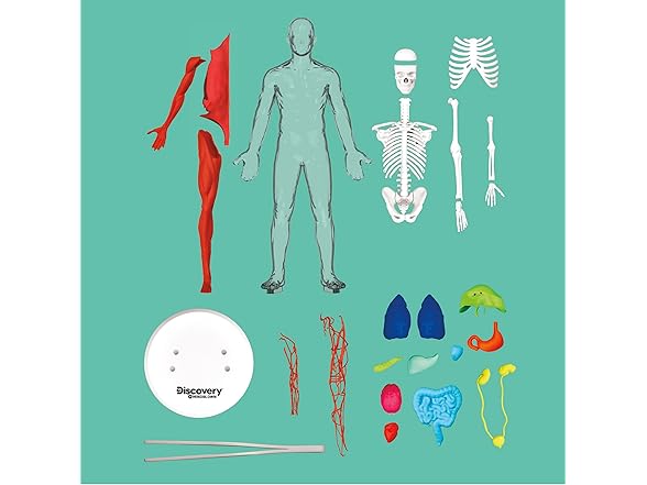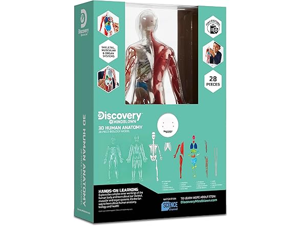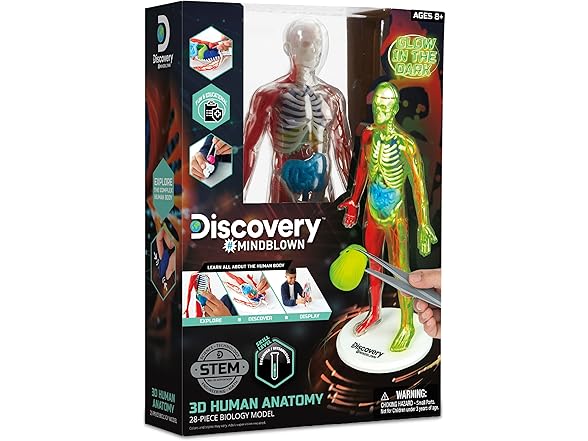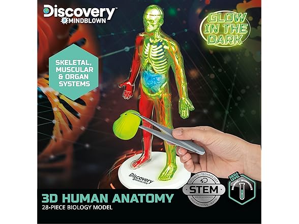 Discovery™ 3D Human Anatomy 28-Piece Biology Model with Glow-in-The-Dark Human Model, Hands on Learning, Age 8+