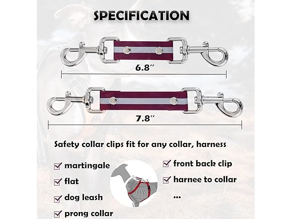 Dog Safety Collar Clip Dogs Backup Harness Clips 2 PCS Double Ended Clasp Safety Collars Clip Pets Pinch Collar Accessories