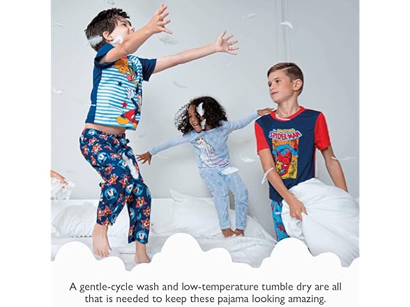 - EASY CARE: Made from 100% polyester with expert stitching for added durability, this boys’ sleepwear will last through many nights of use. For best results, wash these pj’s with mild detergent on a gentle cycle and tumble dry them on low.