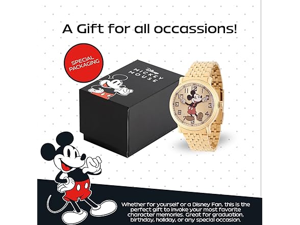 - Perfect Gift for Disney Fans – This Mickey Mouse watch is the ideal gift for Disney lovers, offering a unique blend of style and nostalgia. Whether you're looking for a men’s Disney watch, a vintage Mickey Mouse watch, or a timeless accessory, it makes a memorable present for graduations, birthdays, anniversaries, or any special occasion. Perfect for anyone who cherishes Disney, Mickey Mouse, or classic watches, this piece is sure to delight and evoke fond memories for years to come.
