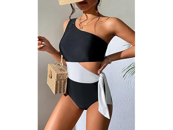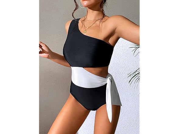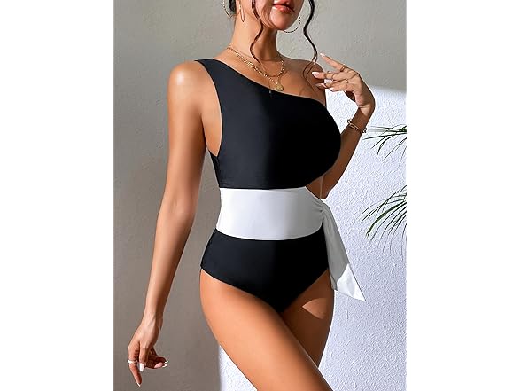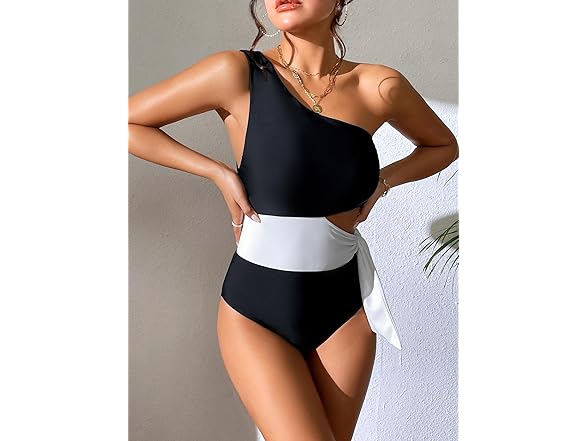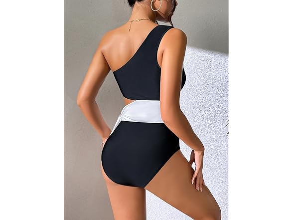 Dixperfect Women's Cut Out One Piece Swimwear Bathing Suit One Shoulder Beachwear Monokini (US, Alpha, X-Large, Regular, Regular, Black)