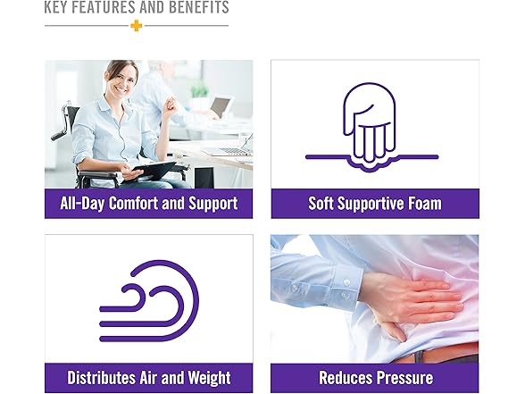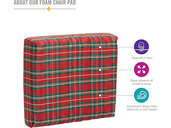 DMI Foam Wheelchair and Seat Cushion - Office Chair Cushion - Support Cushion Chairs Pad, Helps with Sciatica Pain Relief, Plaid Cover, 16 x 18 x 4 inches