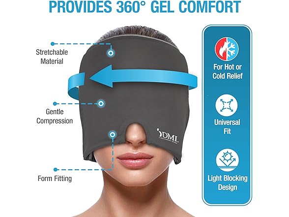 EXPANDED COVERAGE: The DMI Ultra Migraine Relief Cap and headache mask offers coverage with premium quality fabric. Use it hot as a miracle headache relief cap or cold for an ice cap for headaches. Efficiently targeting areas for faster recovery, no unpleasant smell, stays cold longer and maintains maximum flexibility even after prolonged freezing. Upgraded with 20% more gel, this has been a perfect compliment as a cold cap for chemotherapy patients. With 360° full coverage the headache ice pack can be worn up on your head or pulled down to soothe tension.
