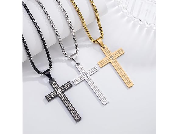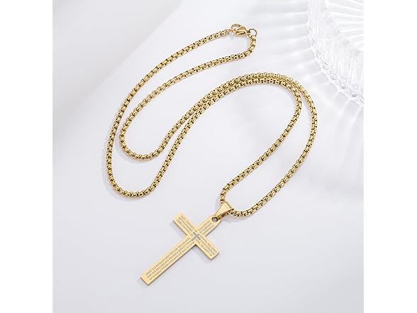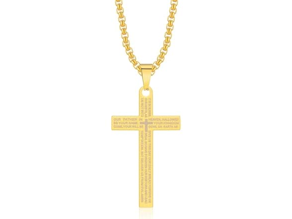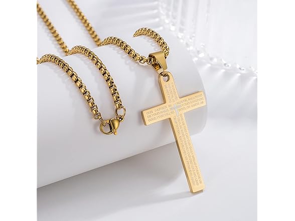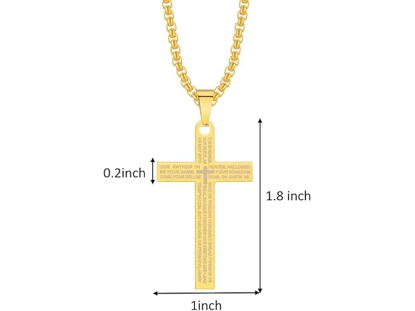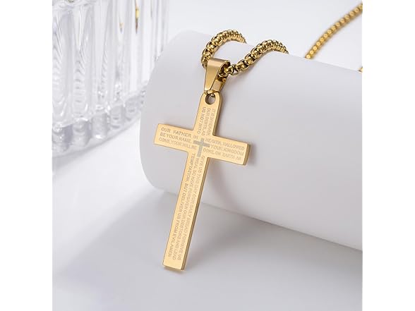 DNBVII Stainless Steel Cross Necklace Lord's Prayer Pendant, Intricate Engraving for Men Women, Faith & Protection with Chain(Gold)