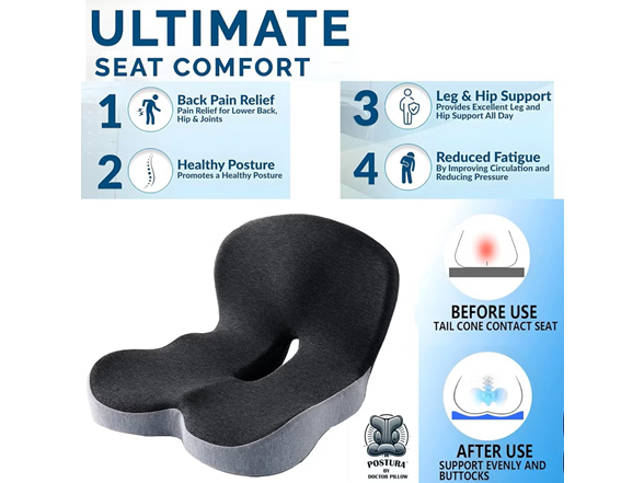 - Posture Correction Support ? Contoured shape aligns the spine and reduces pressure on lower back and tailbone.