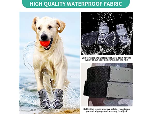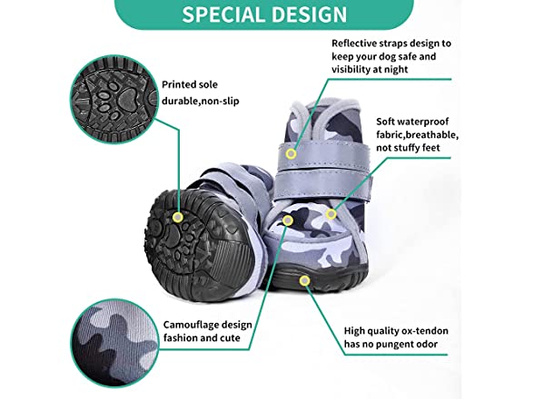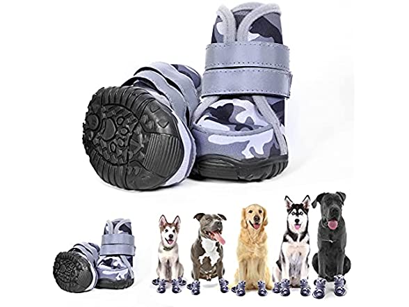 aveolela Dog Boots Non-Slip Dog Shoes Medium Size Dogs, Waterproof Dog Shoes with 4PCS Reflective Strips, Black imitating ox-Tendon Sole, Suitable for Running and Walking(XL, Off-White Camouflage)