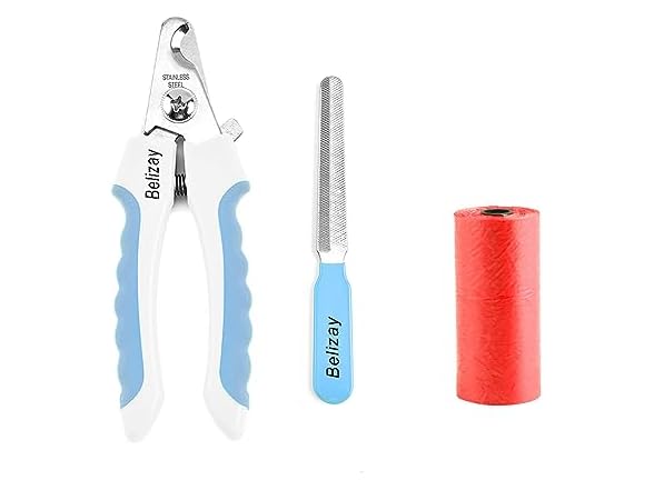 Belizay Dog & Cat Professional Pets Nail Clippers and Trimmers with Poop Bag Rolls Set, Cat and Dog Nail Clippers for Small Dogs with Safety Guard to Avoid Over Cutting. Large Size