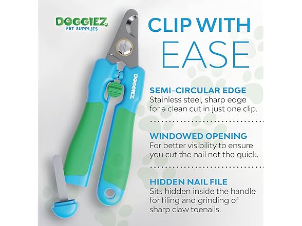 - 2 in 1 SET - Cut, trim, file and grind easily and quickly with the dog nail clipper and file kit from Doggiez Pet Supplies. View our full line of premium pet products and join thousands of happy pet parents...Click Add-to-Cart to order yours Today!