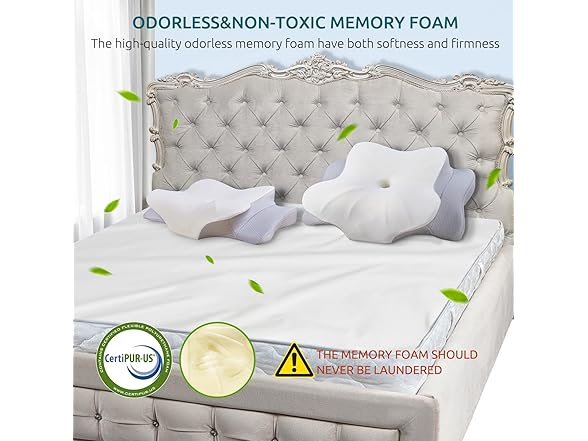 - 【SLOW REBOUND HIGH QUALITY MEMORY FOAM】The neck support pillow is made of high quality CertiPUR-US certified rebound memory foam. Premium quality firm and not too soft for maximum comfort and great relaxation of your head, neck, shoulders and back muscles when you lie on your back or side.When you get the memory foam pillow for the first time, it is recommended to unpack and place it for more than 24 hours. After the pillow core rebounds completely and restores support, it will have a better sleep effect.