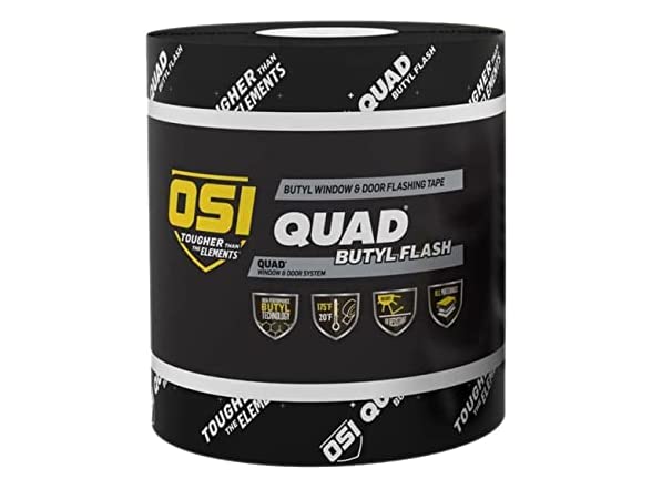 OSI 2579106 6in. x 75ft. Quad Butyl Window and Door Flashing Tape Roll, Black