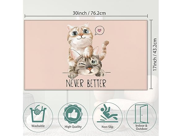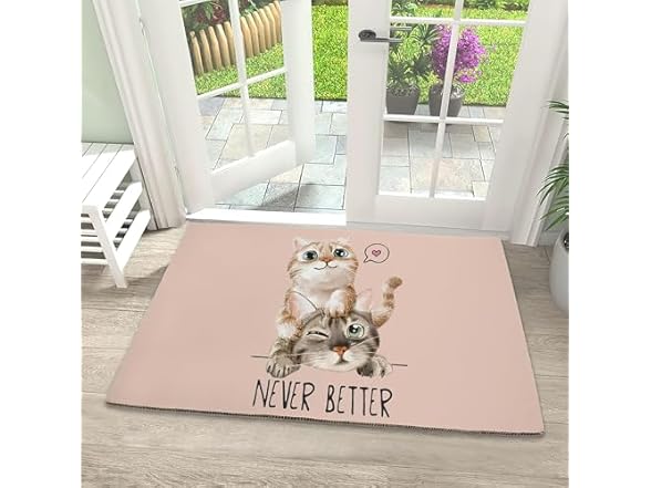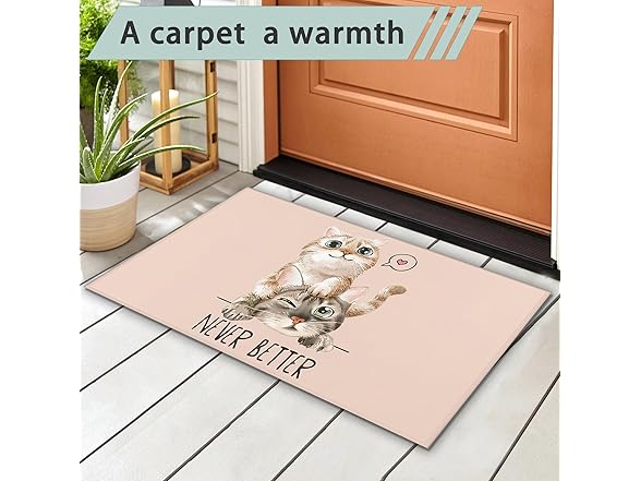 Door Mat, Cute Cat Welcome Mat, Never Better Doormats Indoor Entrance, Indoor Outdoor Mat, Low-Profile Floor Rugs for Entry, Patio, 17''x30''