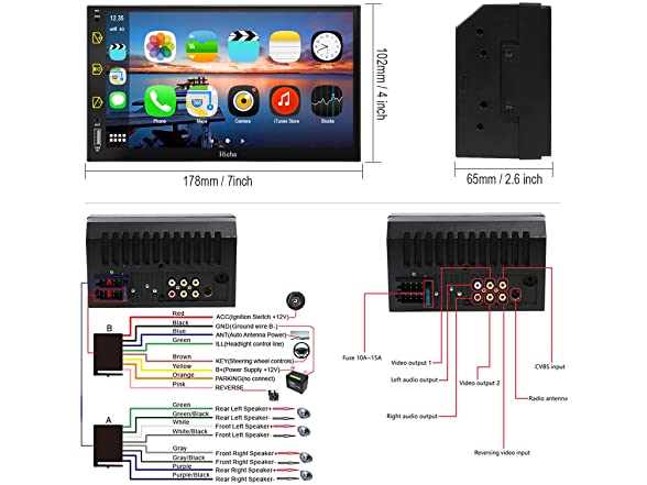 - ▶ Updated Multifunctional Car Audio 🚗 It is more complete: ⓵AM/FM radio tuner; ⓶BT hands-free and music streaming; ⓷USB playback; ⓸Backup camera input; ⓹7 in HD Touch Screen LCD display; ⓺Seamless phone integration. NOTE: Please use the original USB data cable that comes with the phone for Android Auto / CarPlay connection.