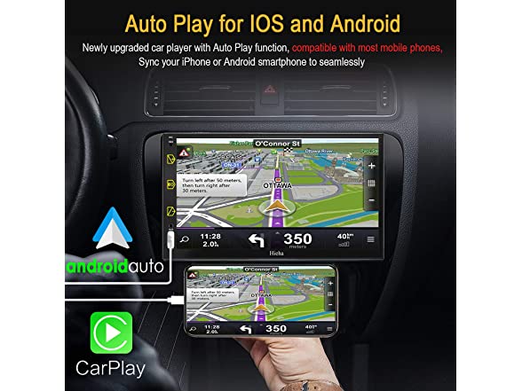 - ▶ Compatible with Apple Carplay & Android Auto🚗 It allows seamless integration of your smartphone with Apple carplay and android car radio via a USB connection to access phone contacts, emails, notifications, map navigation, play music, videos and more information. This upgraded double din is extremely convenient for you who need to drive!