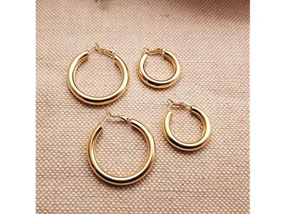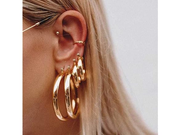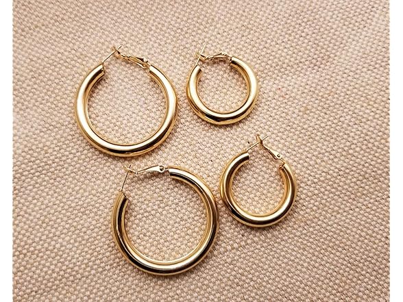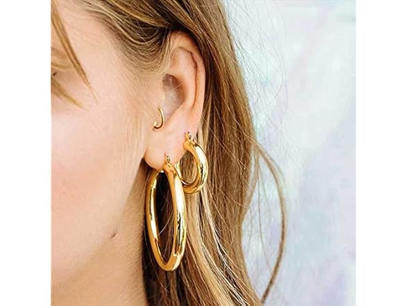 Doubnine Hoop Earrings Sets 2Pairs Thick Tiny Classic Modern Gold Silver Earrings Statement Minimalist for Women (gold (30mm&40mm))