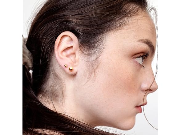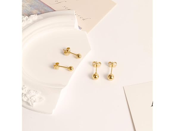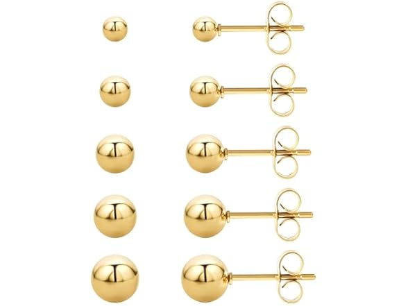 5pairs Ball Stud Earrings Hypoallergenic Piercing Studs, Stainless Steel Earrings 14k Gold Plated Stud Earrings Set For Women, Stud Earrings Set For Multiple Hole Piercing