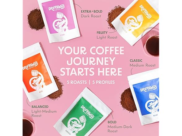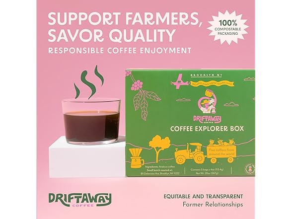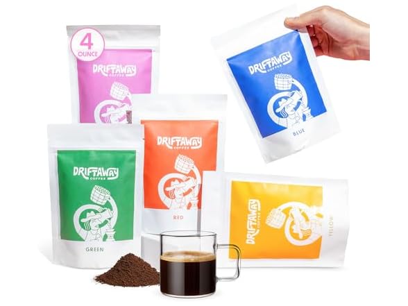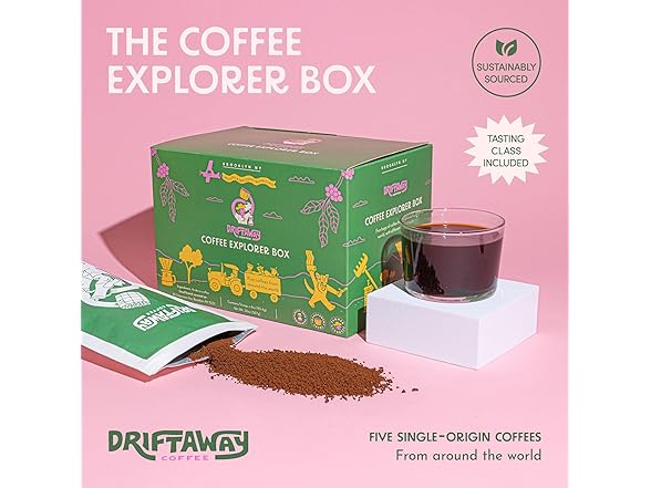 Driftaway Coffee Explorer Box, 5 Pack Coffee Tasting Kit - Single-Origin Ground Coffee from Around the World - 5 Fresh Roasts - Sustainable Sourcing, Small-Scale Farmers - Gourmet Coffee Variety Gift (Drip Grind, 4 Ounce (Pack of 5))