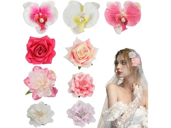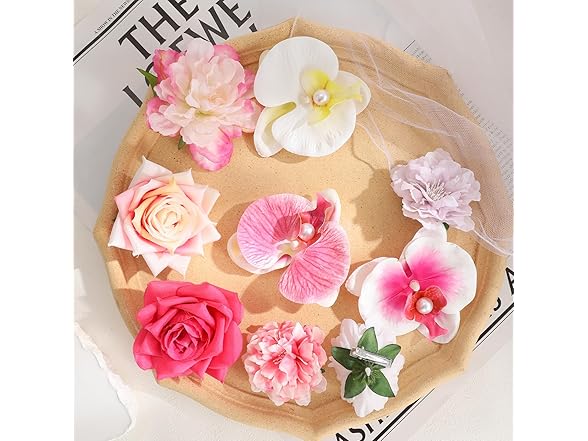 Drnytunk Flower Hair Clips for Women Girls,9Pcs Rose Hair Clips Hair Barrettes for Women Flower Hair Clips Wedding Hair Accessories for Women Girls Beach Party Wedding Decor,Light Color