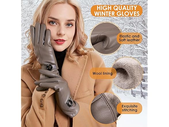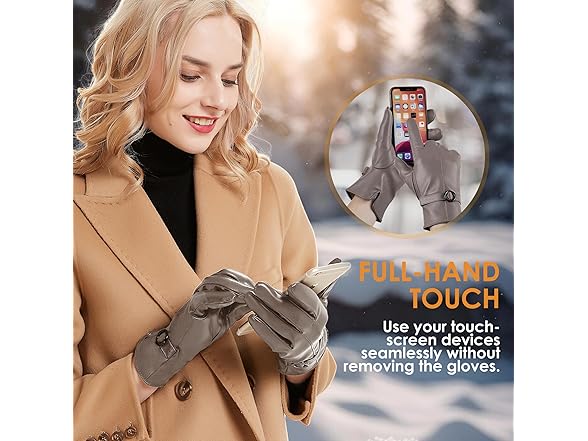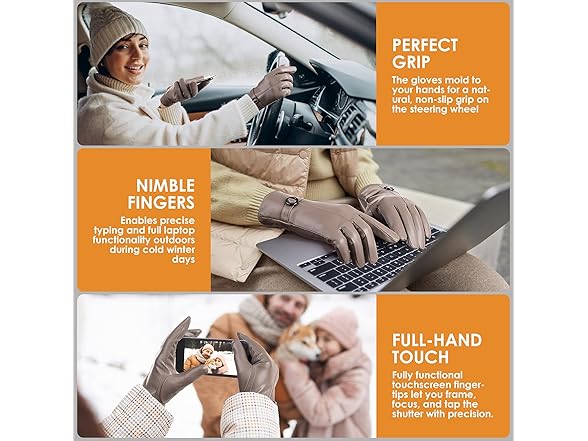 Womens Winter Leather Gloves Touchscreen Texting Warm Driving Lambskin Gloves (Beige, XXL)