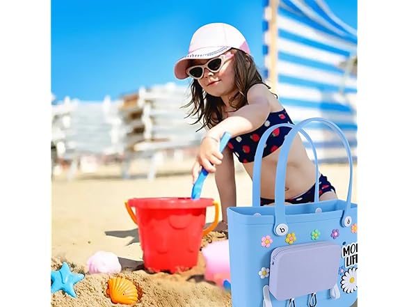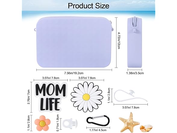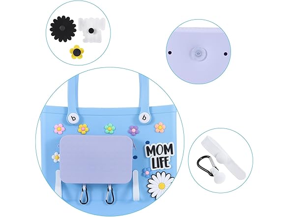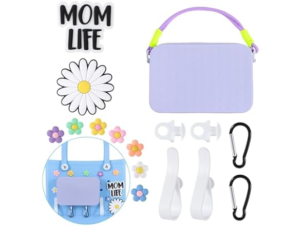 DSLONG Bogg Bag Accessories Silicone Phone Holder for Bogg Bag, Flowers and MOM LIFE Themed Rubber Decorative Insert Charms 6Pcs Charms Hooks Accessories 14-16mm (Purple Set)