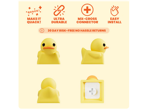 Say goodbye to boring keyboards and say hello to Duckeys! The cutest keyboard charm. Simply remove your keycap of choice and pop on Duckeys for the ultimate quack-tastic keyboard.