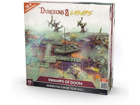 Dungeons & Lasers Swamps of Doom 29 Piece d&d Starter Set Includes Game Mat, Miniature Terrain Elements for 5E Compatible Tabletop Games and DND ‚Unpainted, Unassembled - Ages 14 Years and up