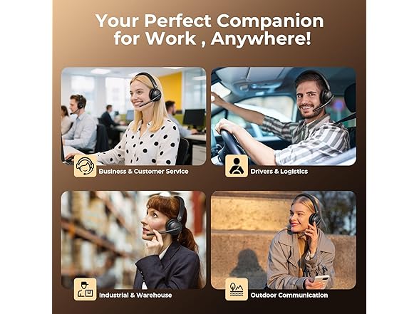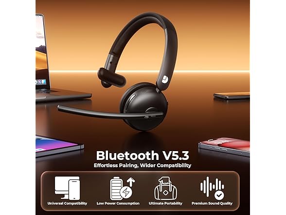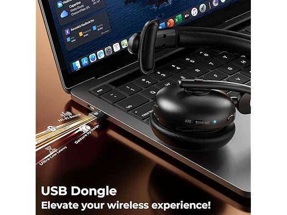 - 2. Effortless Pairing, Universal Compatibility: The wireless headset with mic for work features Bluetooth 5.3 and a USB dongle, ensuring seamless compatibility with your PC, smartphone, and tablet. Super flexible for kinds of work setups. Stroll around up to 15 meters with this Bluetooth headset while you're brainstorming, grabbing a coffee, or just stretching your legs between calls. Work from your desk, the couch, or even the office balcony – your productivity stays untethered