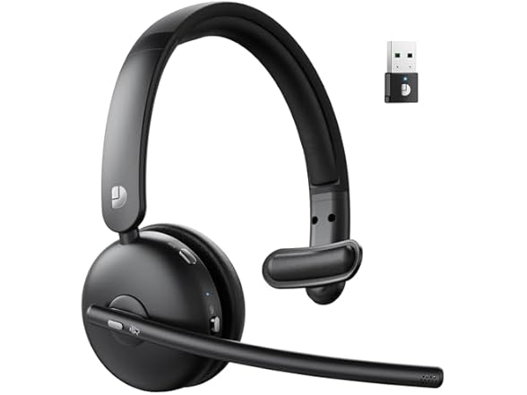 Dytole Wireless Headset, Wireless Headset with Mic for Work(Noise Cancelling), 65 Hours Woktime & Mute Button, Suitable for Call Center/Work from Home