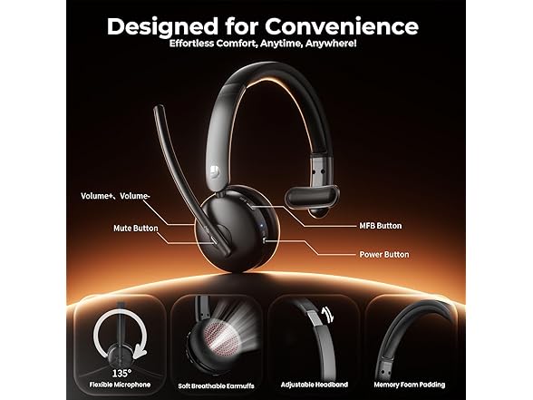 - 5. Comfort That Lasts: Experience all-day comfort with this lightweight, durable wireless headset with mic for work. Made with breathable, skin-friendly materials and easy to keep clean, it's designed for years of consistent comfort and reliability. Whether you're crushing a marathon workday, binge-watching your favorite show, or sneaking in a power nap, this single-ear headset is your ultimate comfort companion. Comfort isn't just a feature; it's your new normal