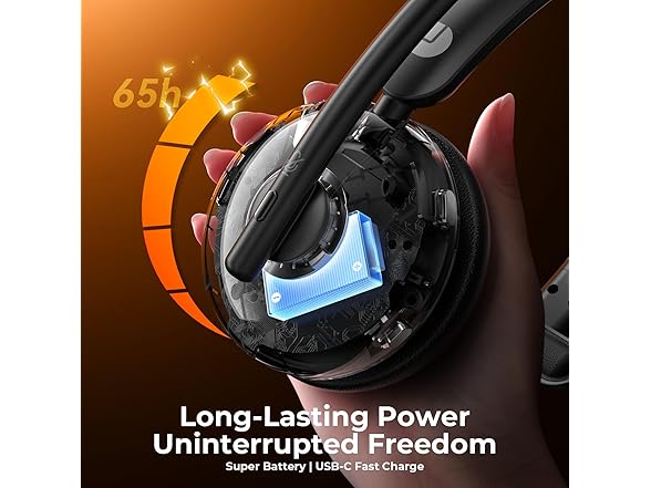 - 3. Power Up, Stay Unstoppable: Tired of constantly worrying about your headset battery? The wireless headset has you covered. A quick 2-hour charge gives you up to 65 hours of juice. Whether you’re powering through back-to-back meetings or listening to your favorite podcast, this Bluetooth headset keeps you going all day long. Ditch the constant charging and boost your productivity. Charge less, do more