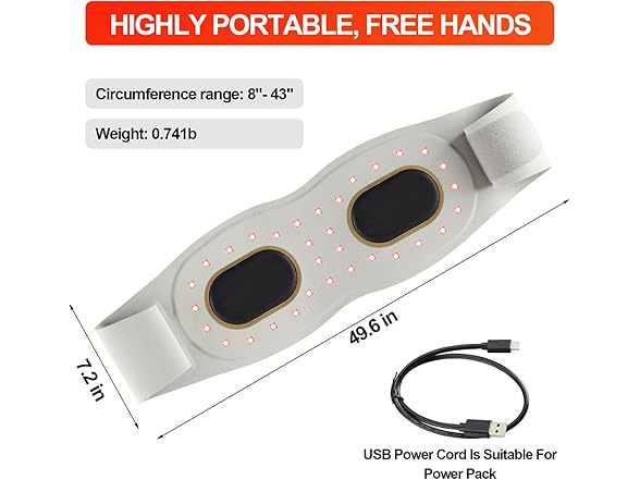 - CONVENIENT AND VERSATILE: Our belts are convenient and versatile. It can be powered using a tape-C port, computer USB port, mobile power or power adapter. Its flexibility allows users to use it anytime, anywhere. For best results, we recommend using it 7-10 times a week for up to 30 minutes. Experience the benefits of the Vibrating Red Light Therapy Belt anytime, anywhere.