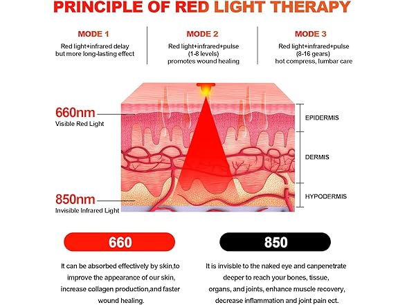 - ADVANCED TECHNOLOGY: Experience vibrational red light therapy, 660 nm red light and 850 nm near infrared light waves in our belts that penetrate deep into subcutaneous tissues, activate muscle cells, relieve fatigue and accelerate healing. Witness improved cellular metabolism and collagen cell growth for youthful skin.