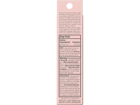 e.l.f. Halo Glow Skin Tint SPF 50, Tinted Moisturizer For Light, Buildable Coverage, Creates A Natural Glow, Vegan & Cruelty-Free, 17 Rich Warm