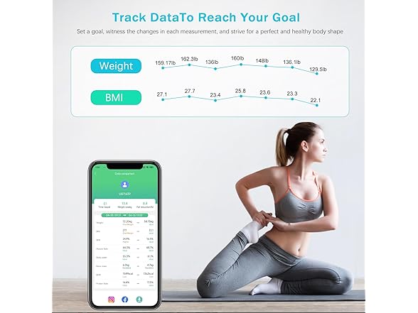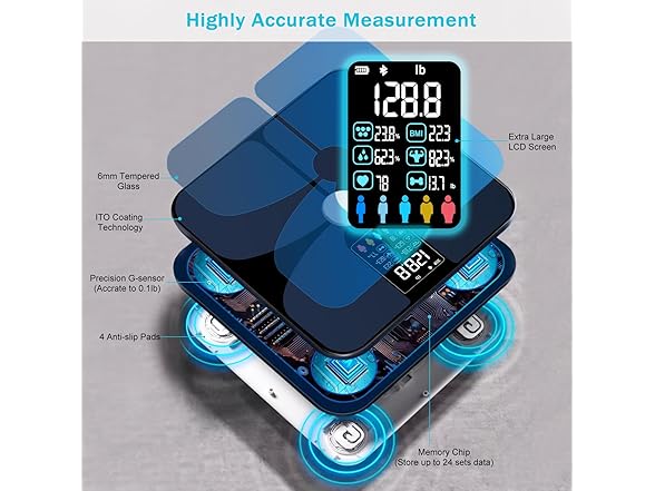 - Ultra large LCD display screen: E-SHIDAI large color LCD screen body fat scale, in addition to the application display screen on the phone, can also directly display your weight and seven other major body composition readings on the scale. The large and easy to read vertically aligned (VA) LCD panel provides the best contrast and color, perfectly presenting your body composition indicators. In order for the scale to recognize you and display seven other data points besides weight, you need to create a personal profile and weigh your weight once through Bluetooth connection