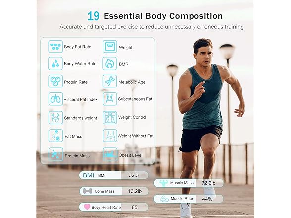 We are committed to advocating the concept of "loving life and enjoying health" for a healthy life, and creating an intelligent health ecosystem that integrates "intelligent sports equipment, health service platform, and health data cloud". By monitoring your heart rate through our body fat scale and adjusting your exercise intensity based on your heart index, you can achieve your fitness goals through the correct training plan, Keep a Healthy Heart Product Name: Smart Scale Product can withstand weight: 396 pounds Product Color: Black Product Weight: 2.14 pounds Product Size: 11x11x1 inches Package includes: 1*smart scale, 1*battery, 1*user manual Function: 1. Including body weight, heart rate, BMI, muscle rate, body fat, lean weight, body water rate, skeletal muscle rate, muscle mass, bone mass, protein, and age 2. Supports up to 396 pounds, ITO coated sensor area suitable for any foot shape