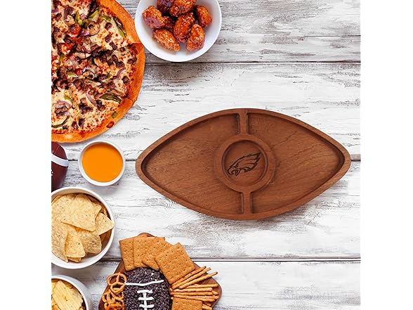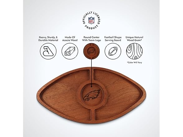 The Memory Company Officially Licensed NFL - Philadelphia Eagles Acacia Football with Round Center Serving Board