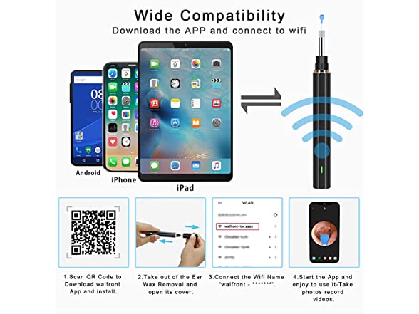 - 【Waterproof 】The wireless ear wax removal tool ear camera lens comes with IP67grade waterproof tech, which is easy to clean with water or wipe with alcohol.