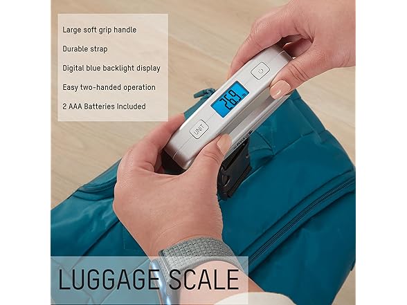 Eat Smart Luggage Scale, Portable Digital Hanging Baggage Scale for Travel, Suit Case Weight Scale, Backlit Display, Large Soft Grip Handle, Durable Strap, 110 lbs 50 kg Capacity, Batteries Included