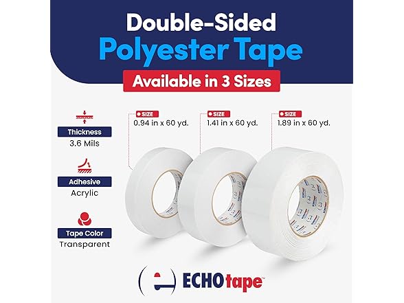 ECHOtape DC-M194A | Double-Sided Polyester Tape | Clear Thin Tape | All Weather/Cold Weather Tape | Insulation Mounting Tape | Contractor Tape | Superior Holding Power | 1.41 in x 60 yd