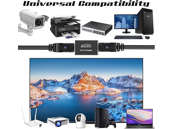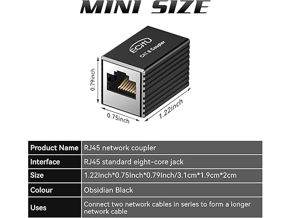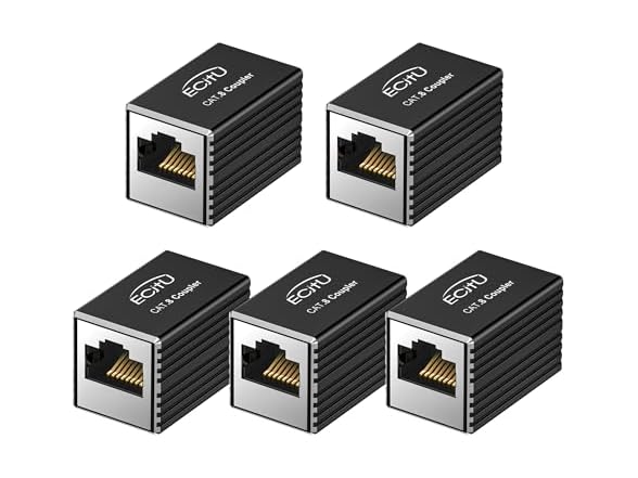 RJ45 Coupler, 5 Pack Ethernet Adapters Female to Female, Ethernet Cable Extender Adapter, 8-Pin Modular Straight Through, Network Connector for Cat8/Cat7/Cat6/Cat6a/Cat5 Ethernet Cable(Metallic Black)