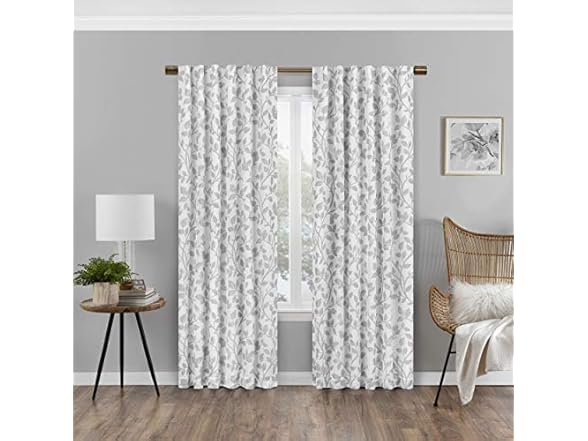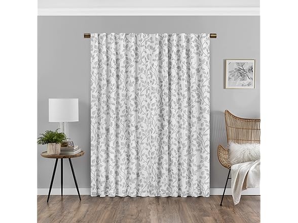 Eclipse Absolute Zero Nora Botanical Blackout Thermal Insulated Rod Pocket Curtains for Bedroom, Single Panel, 50" x 108", White
